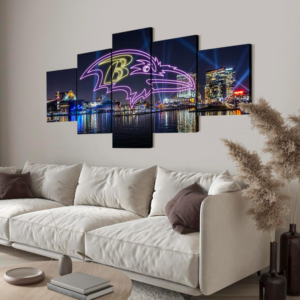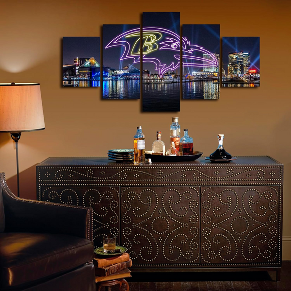Baltimore Ravens NFL Football Team Logo & City Landscape 5 Piece Canvas Wall Art Painting Wallpaper Poster Picture Print Photo Decor
