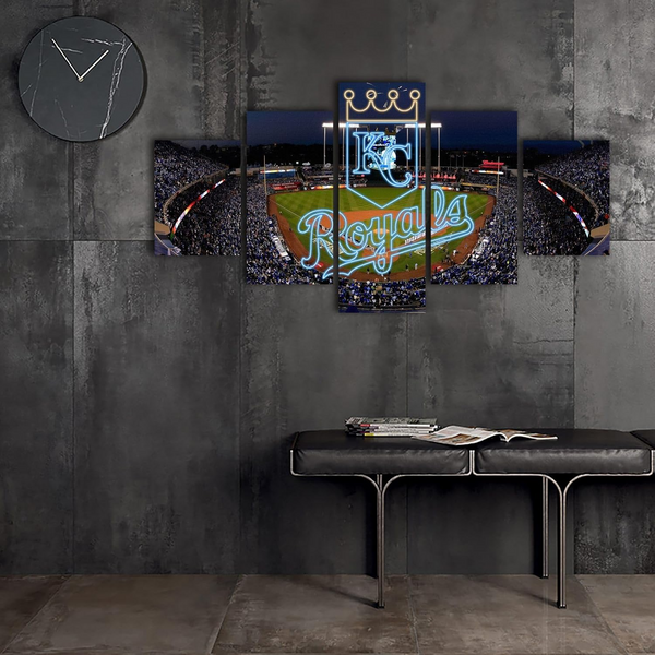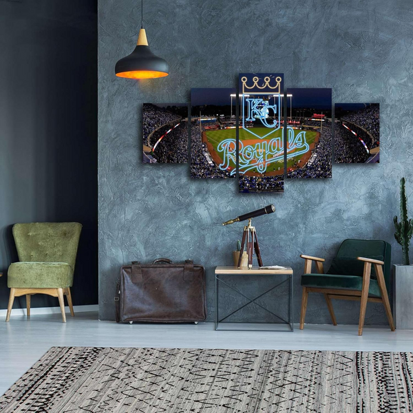 Kansas City Royals Stadium & Logo MLB Baseball Team 5 Piece Canvas Wall Art Painting Wallpaper Poster Picture Print Photo Decor